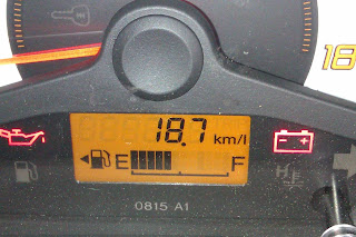 Yesterday I have taken my car to City Center 2, Rajarhat. From my home it's almost 22 km, with half of the road is very congested city road and half of the road is city bypass highway. In this total 22 km during noon [low traffic], without AC I got the mileage of 24 km/litre. In the same road, during returning back to home in evening [very high traffic], I got the mileage of 21.5 km/litre. I ran the vehichle in an average speed of 40-50 km/hr whereas top speed was around 65-70km/hr.. I was quite impressed by the mileage.